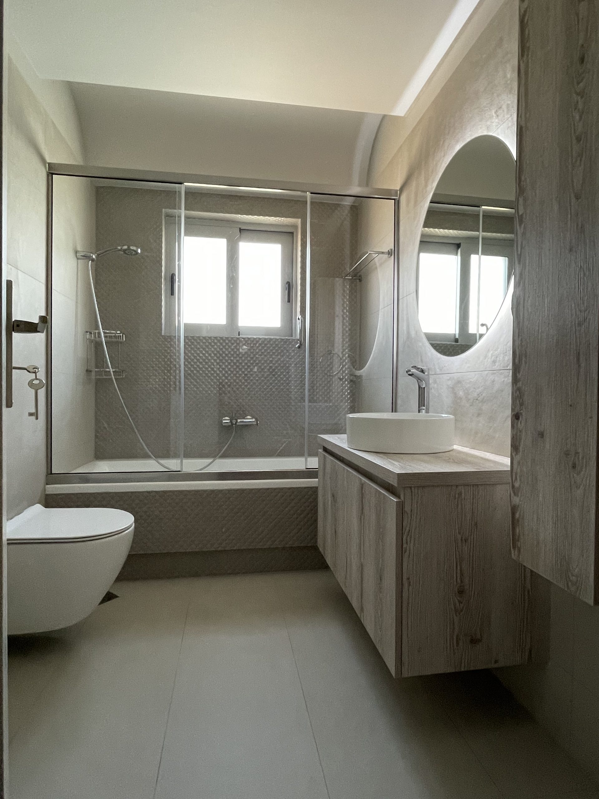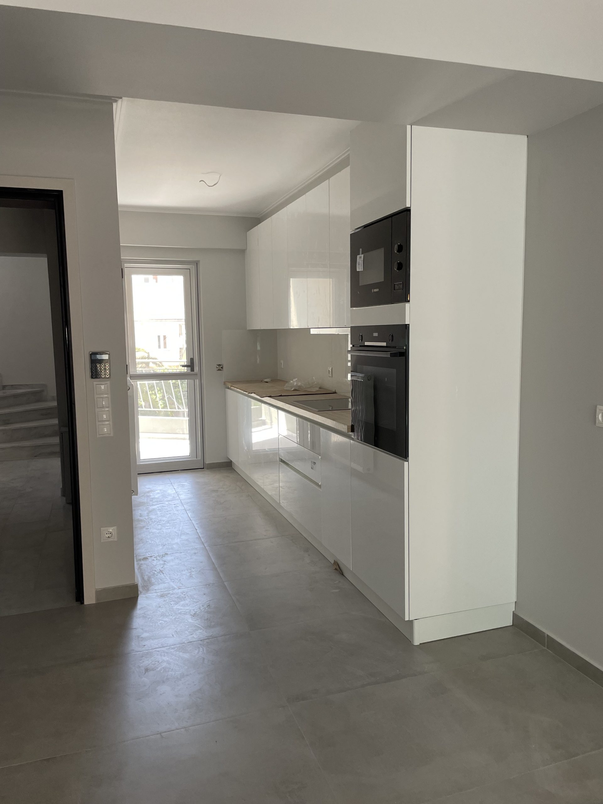 Νέο τετραώροφο κτίριο επί Pilotis με υπόγειο και δώμα. Πωλούνται νεόδμητα πολυτελή διαμερίσματα με αποθήκη και parking. Ενεργειακής κλάσης A με αυτόνομη θέρμανση αερίου (επίτοιχοι λέβητες αερίου), ενδοδαπέδια θέρμανση, boiler, πίνακας με ξεχωριστές ασφάλειες για κάθε χώρο, ηχομόνωση, τζάκι, πόρτα ασφαλείας, εγκατάσταση συναγερμού, δορυφορική κεραία και ίντερνετ σε όλους τους χώρους. Ενεργειακά κουφώματα με ηλεκτρικά ρολλά, κεντρική είσοδος πολυκατοικίας αλουμινίου με διπλό ηλεκτρομαγνητικό κυπρί. Παροχή στεγανής πρίζας στην πυλώτη για φόρτιση ηλεκτρικού αυτοκινήτου.